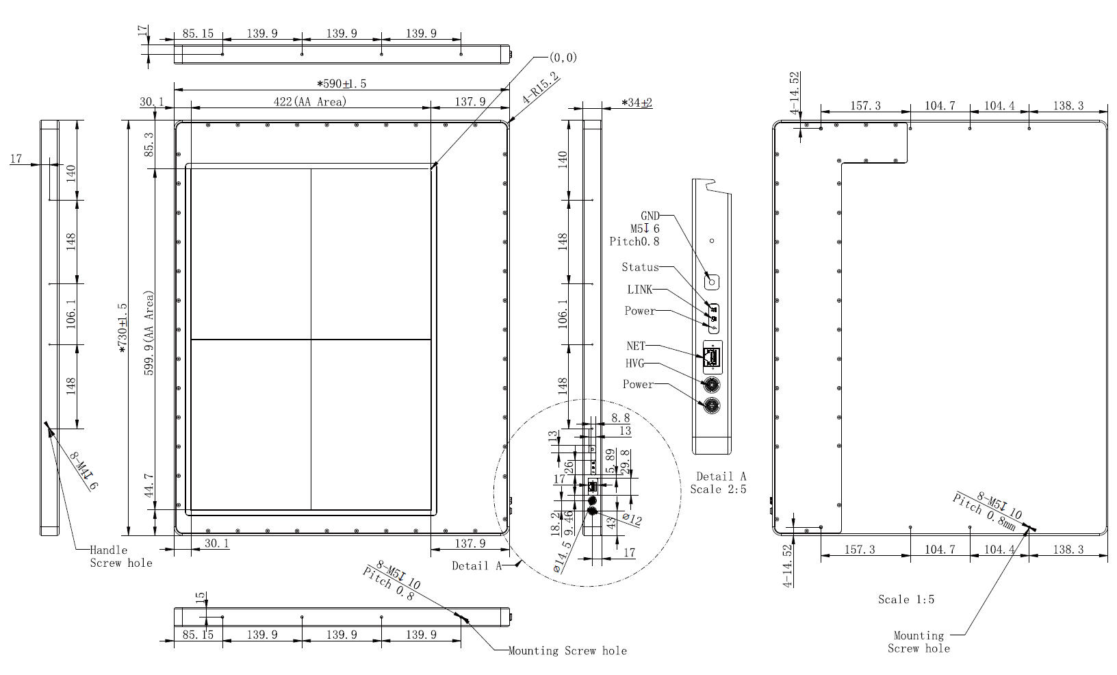 | 成像面积 | 422mm×600mm | 尺寸 | 590mm×730mm×34mm |