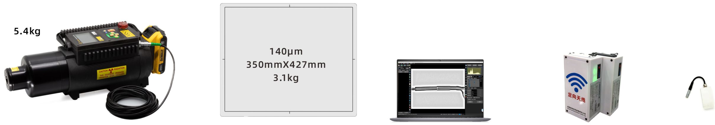 ![]() | 通过WiFi控制射线机,无需有线连接 使用射线机内部电源供电,无需电池 内置全向天线 |