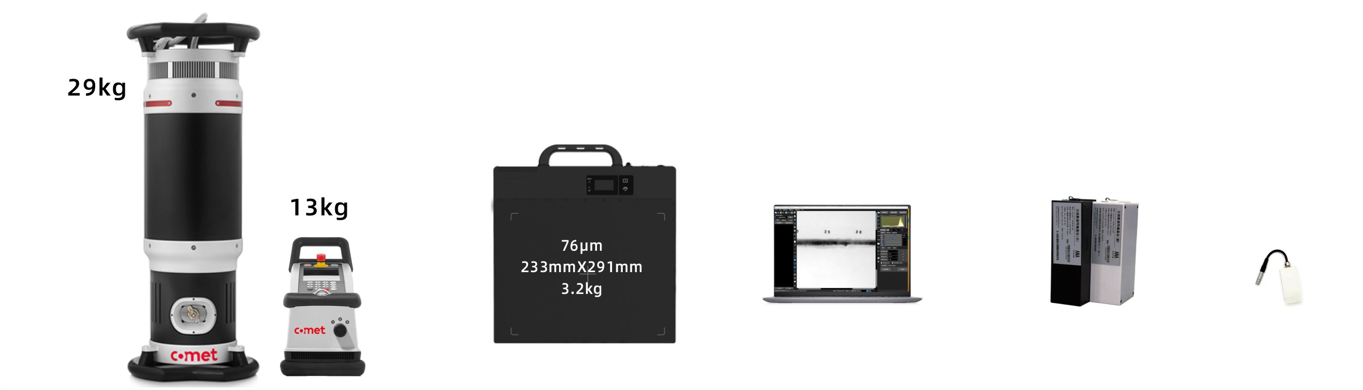 ![]() | • 不含放射性物质,只有高压启动才产生X射线辐射 • 新型电子封装,增加设备环境适应能力 • 软件无线控制 • 全电池供电,灵活机动,便于携带 |