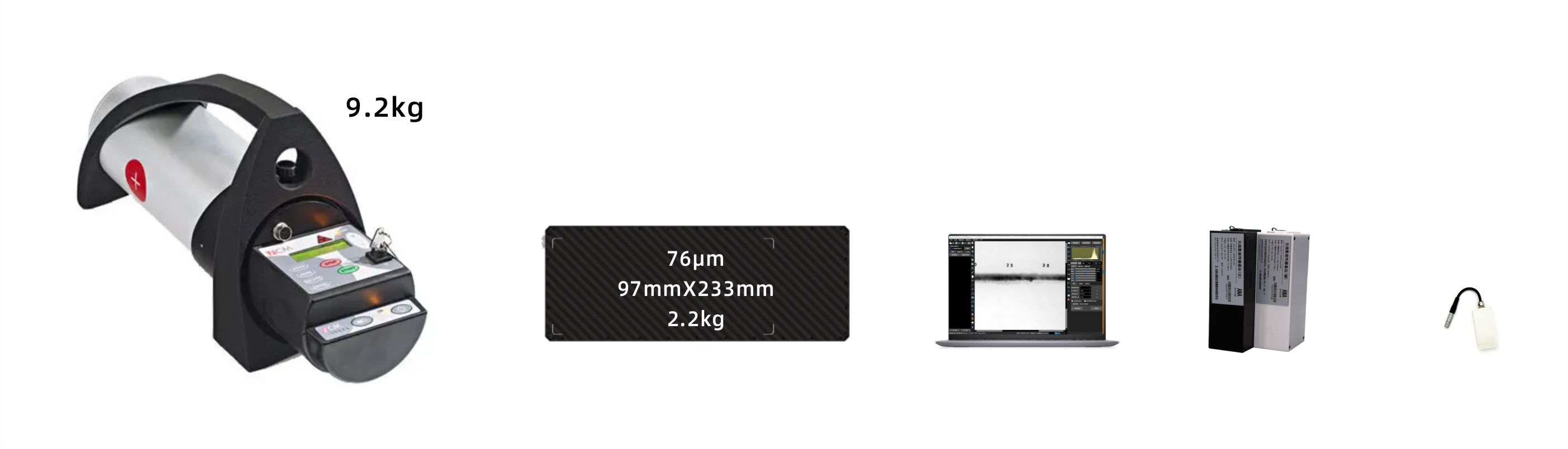 ![]() | • 不含放射性物质,只有高压启动才产生X射线辐射 • 新型电子封装,增加设备环境适应能力 • 软件无线控制 • 全电池供电,灵活机动,便于携带 |
