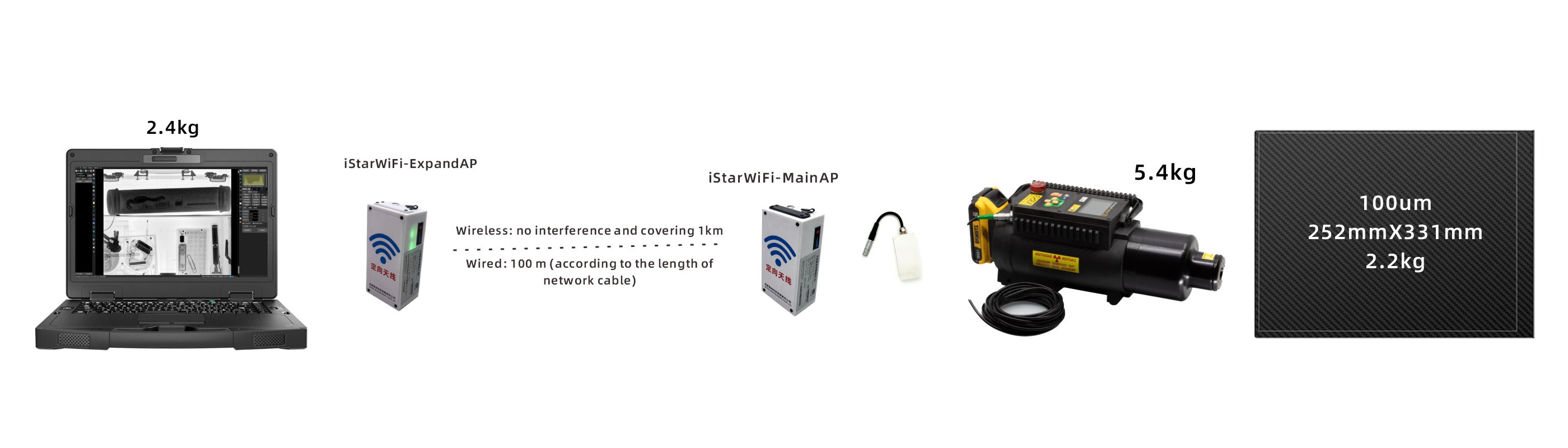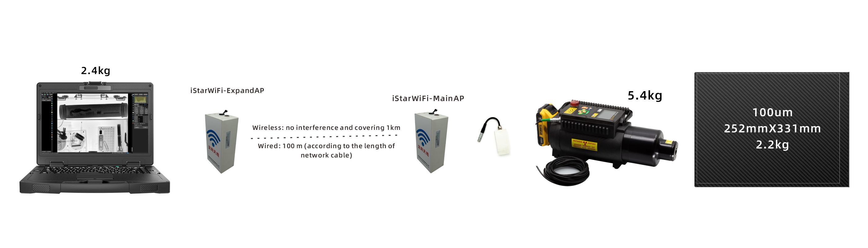 ![]() | Pulse Ray Machine • Battery powered, flexible and portable • Only produces pulsed radiation, no radioactive material • 270kV pulse radiation, penetrating 85mm steel plate |